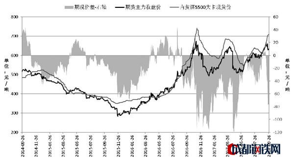 在供給有限、需求升溫的市場形勢下,煤炭貿(mào)易商惜售情緒升溫,長協(xié)合同之外的市場煤報(bào)價(jià)不斷探漲。截至9月26日,秦皇島港5500大卡動(dòng)力煤現(xiàn)貨市場報(bào)價(jià)已經(jīng)超過710元/噸,與動(dòng)力煤1801合約收盤價(jià)相差76.4元/噸。如此大的期貨貼水幅度,吸引了期現(xiàn)套利資金、買入套保企業(yè)等做多力量。
